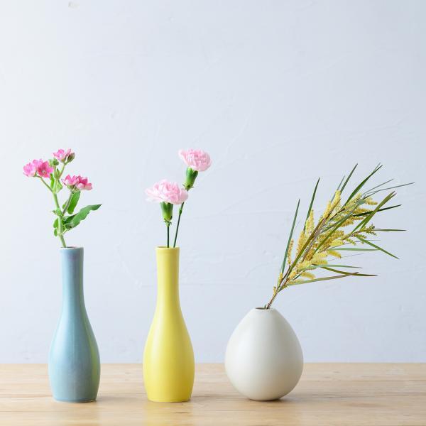 丸みのあるフォルムが愛らしい、薄いグレーカラーの花瓶。そっとインテリアの中にも溶け込み、活けるお花を選ばないアイテムです。